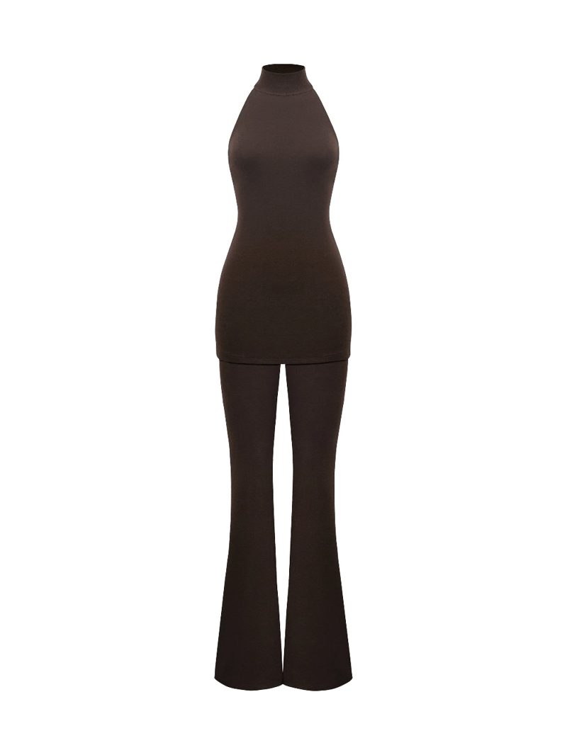 Backless Halter Top And Flared Pants Two-piece Set